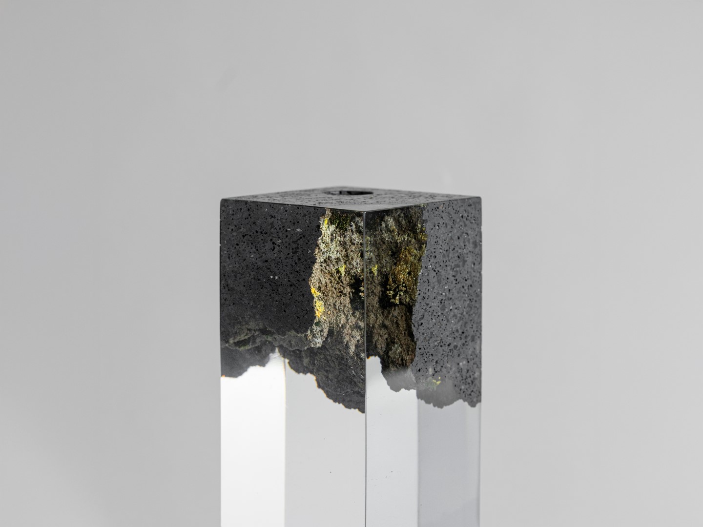 Here, water and lava — elemental forces that shaped the conditions for life — converge once more, becoming a symbolic source of nourishment. The vessel is not only a container, but a site of continuity, where a plant or flower draws from this elemental memory, as if sustained by the very conditions that once made life possible.